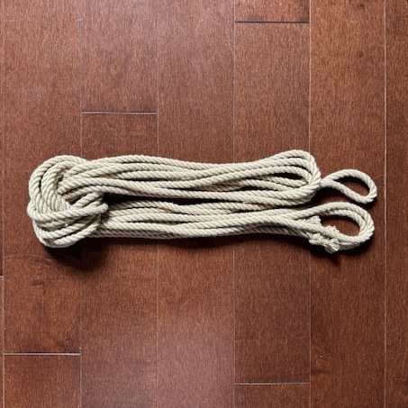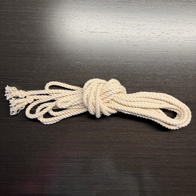 La majorité de nos enseignant•es utilisent la corde de jute traitée comme outil de base. Nous offrons aussi la corde synthétique POSH en polyester qui est plus facile à nettoyer et plus durable. Ces deux types de cordes sont offerts dans plusieurs couleurs en longueur de 8m, avec nœuds chardon (thistle). Contactez-nous pour une commande sur mesure, disponibilité en fonction de notre inventaire.