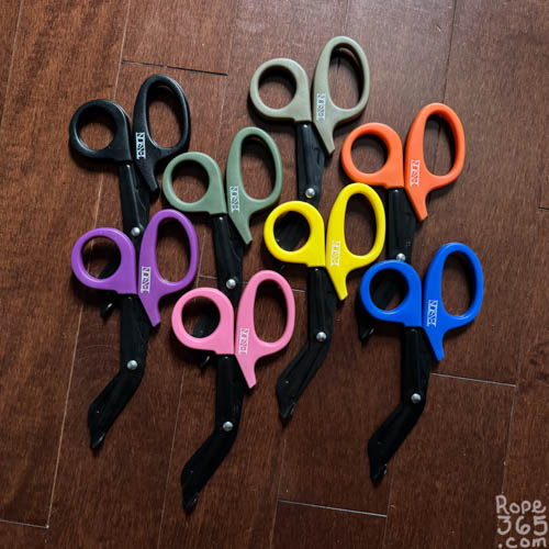 Les ciseaux de sécurité sont un essentiel pour couper la corde en cas d’urgence. L’huile de jojoba est recommandée pour entretenir la corde de jute.
